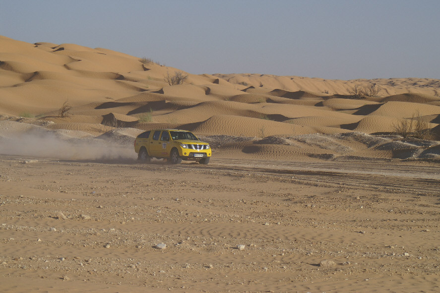 Anforderung: Das Fahrzeug soll variabel als Reisefahrzeug und als Rallyebegleitfahrzeug genutzt werden und trotzdem alltagstauglich bleiben. Eine hohe Zuladung muss möglich sein. Der komplette Unterboden muss geschützt werden. Eine extreme Beanspruchung des gesamten Fahrzeuges muss gewährleistet sein. Besseres, höheres Fahrwerk, bessere Federrate vorn und hinten (Old Man Emu) + 6 cm. Achsenfangbänder hinten (DAKTEC), Achsenanschläge vorn (DAKTEC). Größere Geländereifen 6 x 265/70 R 17 AT2. Sicherheitskäfig innen (DAKTEC). Hosenträgergurte (Sandtler). GPS (Garmin), Tripmaster (Terratrip), Kompressorsystem (DAKTEC), Webasto Standheizung, schräges Hardtop, Alustoßstange hinten (DAKTEC), Doppelrohrauspuff hinten (DAKTEC), Reserveradhalter für 2 Räder auf Ladefläche (DAKTEC), Frontstoßstange aus Stahl (ASFIR), Unterfahrschutz Front, Getriebe & Tank (Asfir), 220 Volt Spannungswandler für Ladung von Akkus usw. (Waeco/Daktec / IBS), ABS-Notaus-Schaltung, Airbag-Abschaltung, Lackierung des gesamten Fahrzeuges in gelb (Krüger Lack & Design).