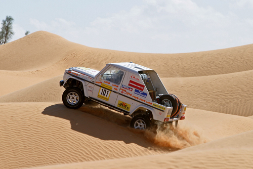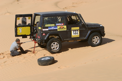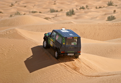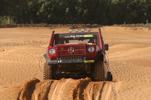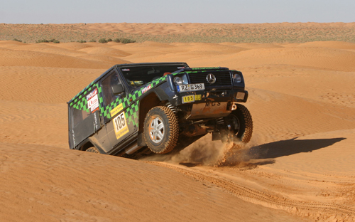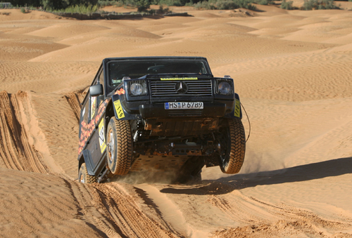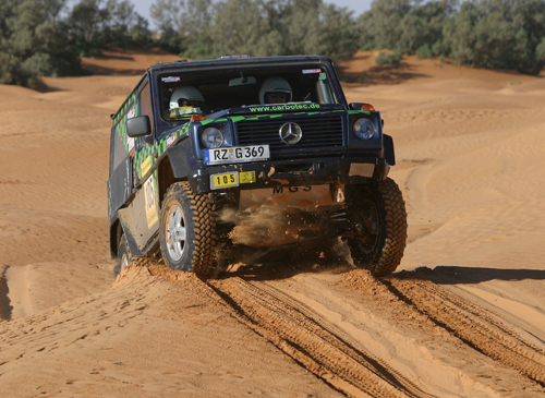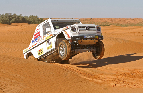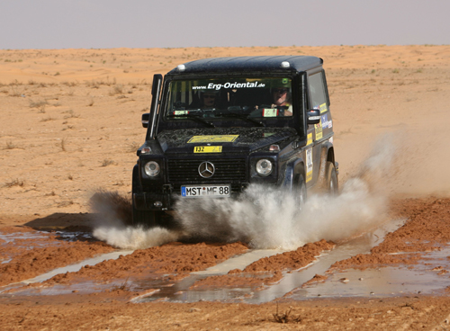 Der Mercedes G ist nach wie vor einer der beliebsten Rallywagen der Off-Road-Scene. Das mächtige Fahrzeugkonzept hat 2007 auf der Erg Oriental gezeigt was wert ist.